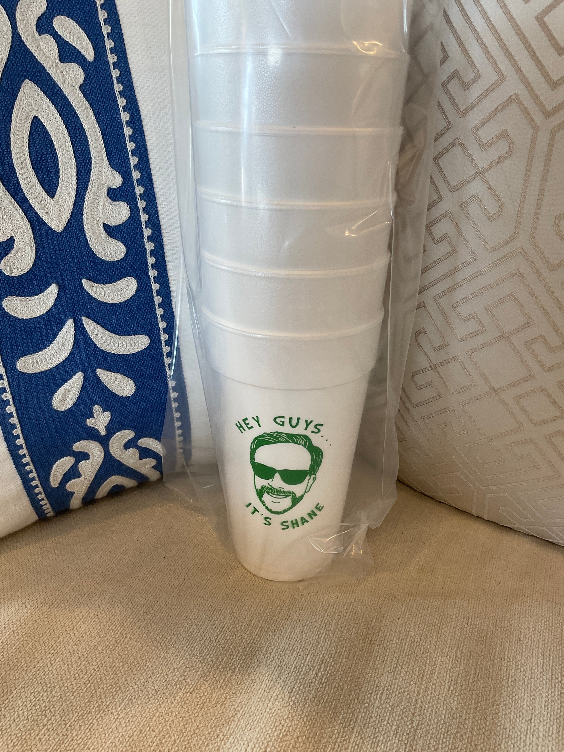 Introducing Hey Guys, It's Shane Cups - a sleeve of 10 expertly designed cups featuring our logo. Perfect for representing our brand while enjoying your favorite beverage. Take Shane with you!