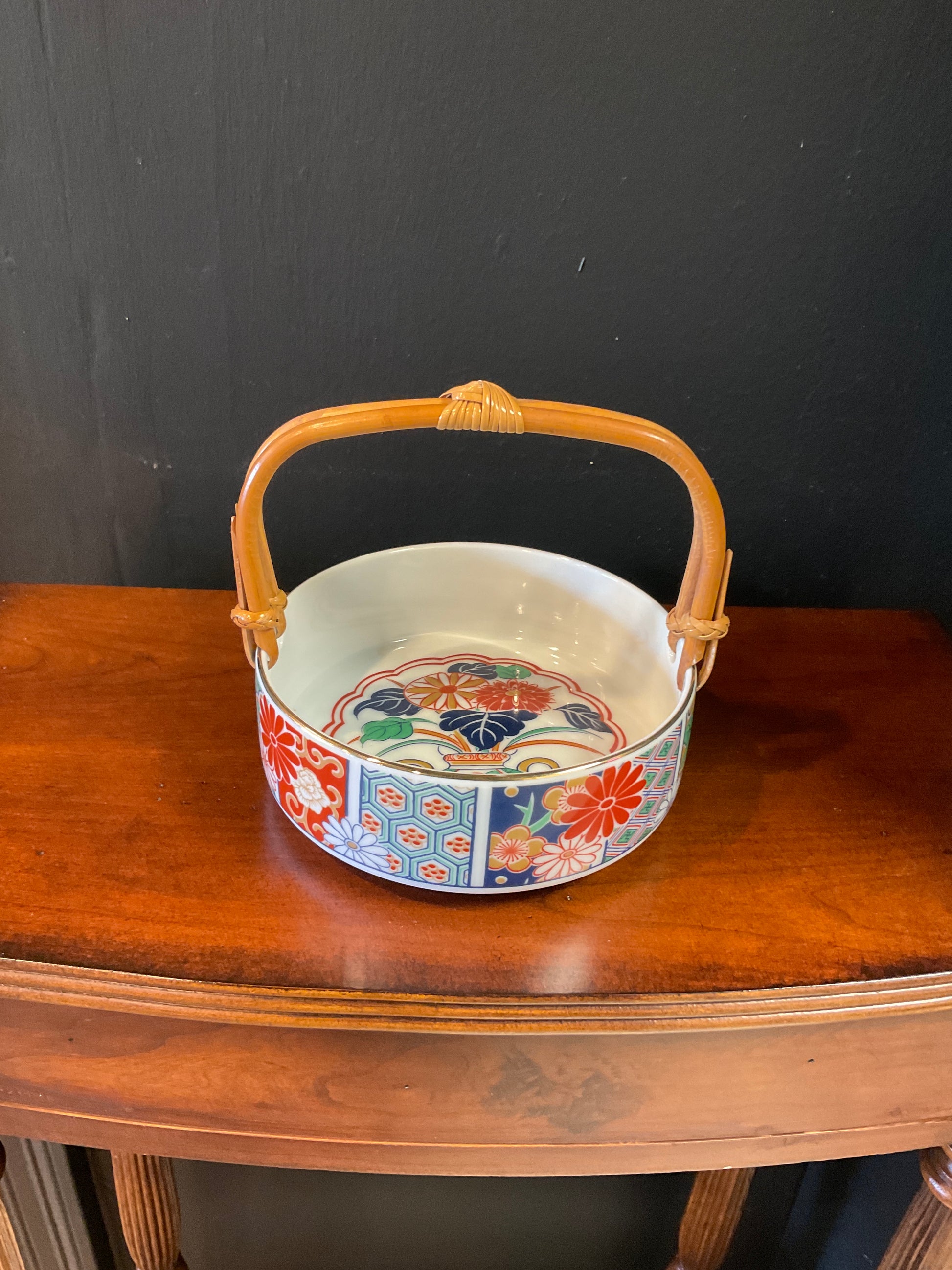 Japanese Porcelain Bowl with Bamboo Handle