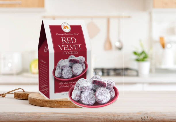 The ultimate flavor delivery: Rich chocolate infuses every mouthwatering morsel of these crispy crimson treats. Inspired by the Red Velvet Cake, the classic luxury dessert that has set a standard for delicious elegance for generations, our luscious interpretation features fresh creamery butter and superb quality chocolate, baked to delicately crisp perfection and twirled in a dusting of powdered sugar. Ruby red treats you’ll treasure, and devour!